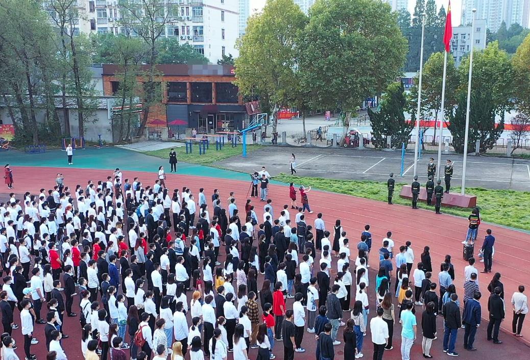 升旗仪式上,湖大学生会会主席叶文静同学做了国旗下的发言,她说,“高高飘扬的国旗和满街飘香的月饼,国和家撞了个满怀,71年风雨兼程换来眼前的盛世如歌,作为新时代的湖大青年,我们有信心、有决心在新时代的跑道上奋力奔跑、全力冲刺。”