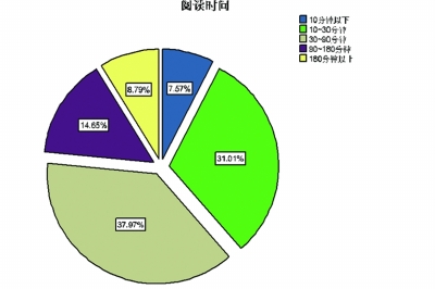 今年3月底,最终的调查报告出炉。这份调查报告包括武汉市民阅读的基本状况、阅读载体、网络阅读状况等部分。每个部分又包括数据和分析。报告显示,武汉人平均每天读书时间68.9分钟,月读书消费58.2元,家庭平均藏书量110本、武汉市民每年公共阅读场所的平均使用频率为83.89次。