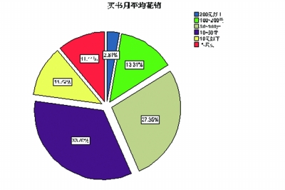 据调查,2012年武汉市民平均每月在书报期刊上的花销为58.2元,其中有11.1%市民基本不购买书报期刊,另有2.8%的市民每月购买书报期刊的花销超过200元。根据《武汉市统计年鉴2011》,2010年武汉市民年人均可支配收入为20806.32元,即人均月可支配收入为1733.3元。而市民每月在书报刊上的花销为58.2元,约占可支配收入的3.4%。
